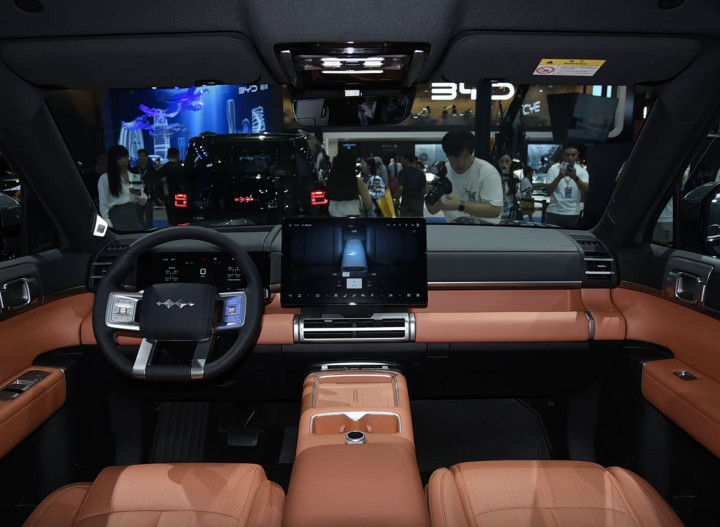 内饰方面,方程豹钛7延续了家族式设计风格,采用15.6英寸悬浮式中控屏与12.3英寸全液晶仪表的组合,搭配27 英寸 W-HUD 抬头显示,为驾驶者提供了丰富且清晰的车辆信息。此外,车内提供雪隐灰、日蚀蓝和暮云橙三种内饰色彩方案,满足消费者个性化选择。